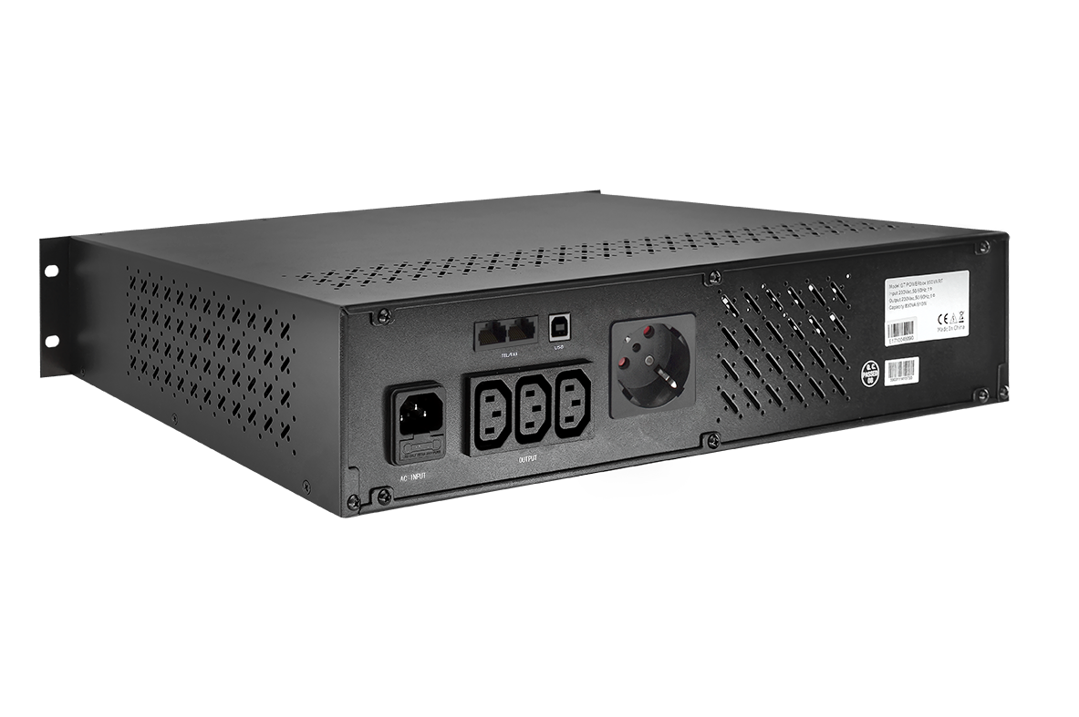 Zasilacz UPS przeznaczony do zasilania bezprzerwowego komputerów, sprzętów biurowych lub innych urządzeń i rozwiązań wymagających ciągłości zasilania. Zasilacz beztransformatorowy, pracujący w trybie Line-Interactive, niezależnie od parametrów napięcia sieci zasilającej (VI) w kompatkowej obudowie przeznaczonej do zabudowy w standardzie 19” o mocy 850 VA. Czas przełączenia 2÷6 ms między trybami pracy zapewnia bezprzerwową pracę urządzeń wyposażonych w zasilacze impulsowe.